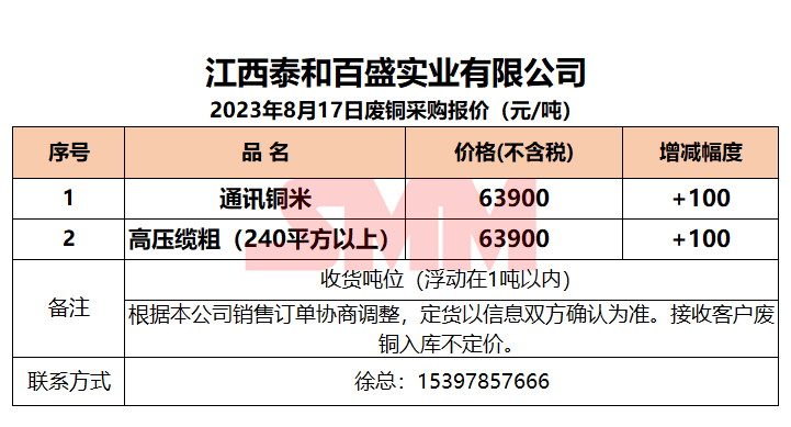 今日江西泰和百盛实业 ,废铜采购报价已更新,有货的朋友欢迎联系我们!