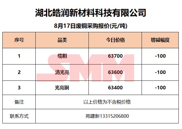 今日湖北皓润新材料 废铜采购报价已更新,有货的朋友欢迎联系我们!