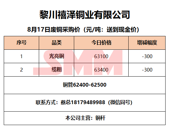 8月17日黎川禧泽铜业 废铜采购报价