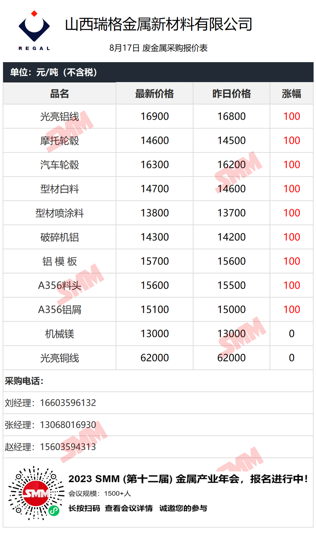 再生金属企业报价合作需求