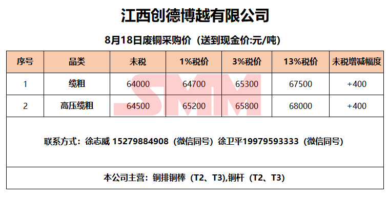 今日江西创德博越,废铜采购报价已更新,有货的朋友欢迎联系我们!