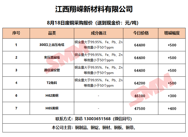 今日江西翔嵘新材料,废铜采购报价已更新,有货的朋友欢迎联系我们!