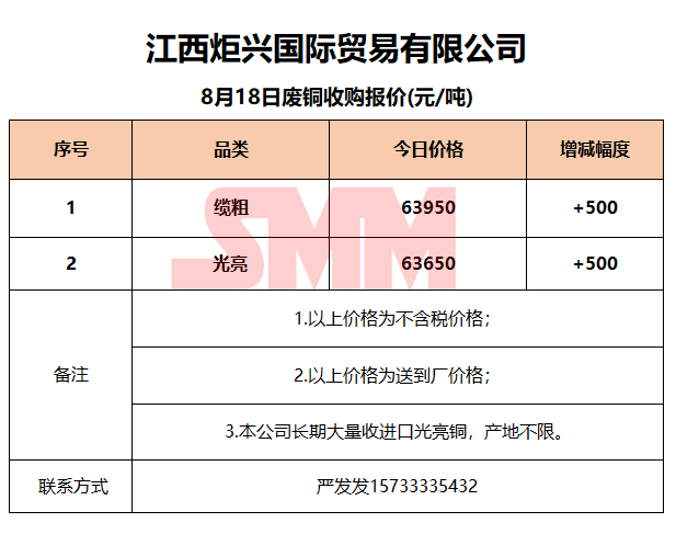 8月18日江西炬兴 废铜收购报价