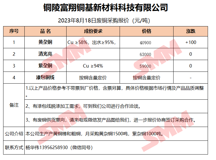 今日铜陵富翔 废铜采购报价已更新,有货的朋友欢迎联系我们!