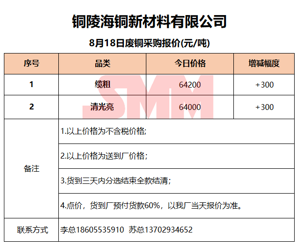 8月18日铜陵海铜 废铜采购报价