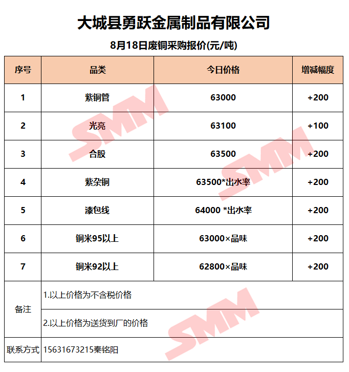 今日大城勇跃,废铜采购报价已更新,有货的朋友欢迎联系我们!