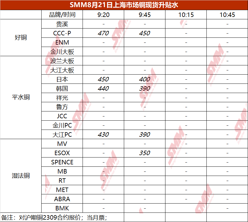8月21日上海市场铜现货升贴水(第二时段)【SMM价格】