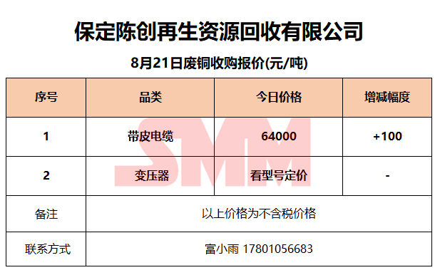 8月21日保定陈创 废金属收购报价