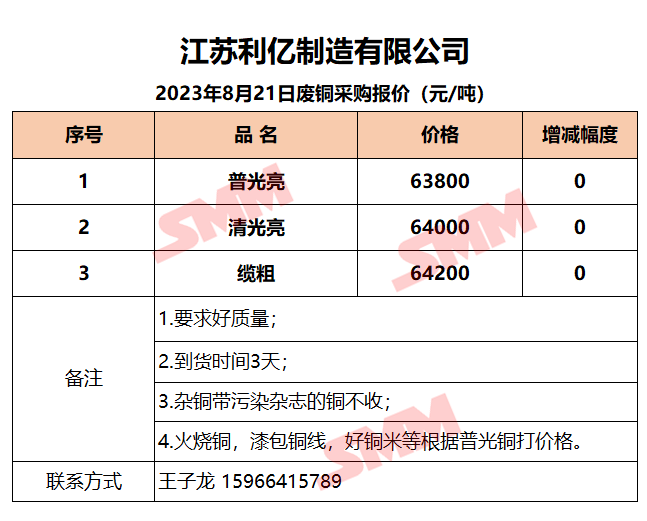 8月21日江苏利亿 废铜采购报价