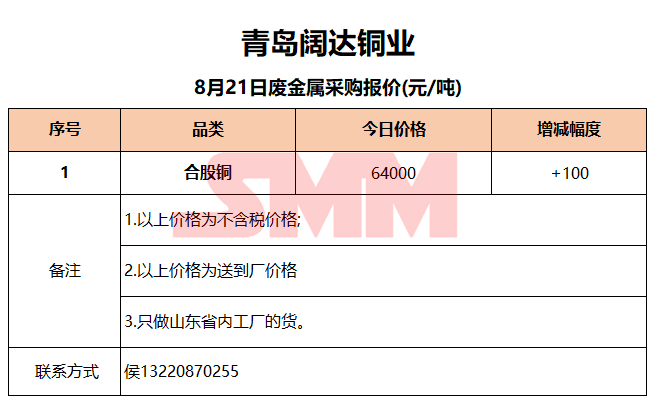 8月21日青岛阔达 废金属采购报价