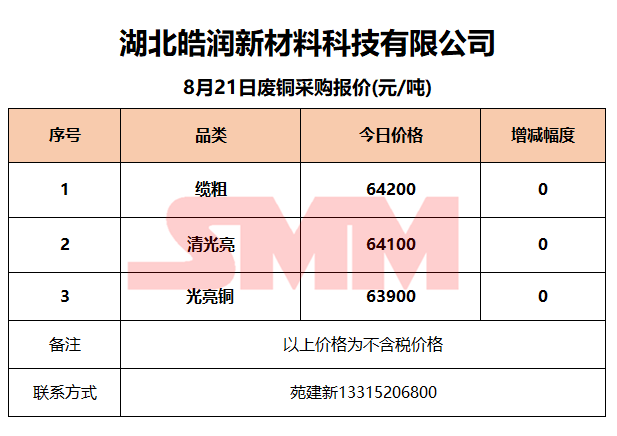 8月21日湖北皓润 废铜采购报价