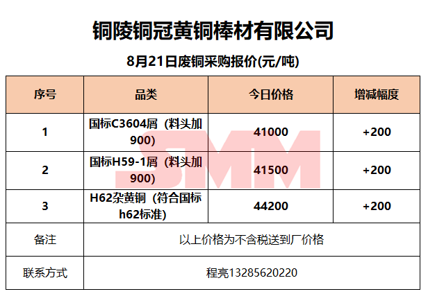 8月21日铜陵铜冠 废铜采购报价