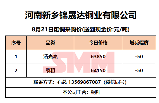 8月21日河南锦晟达 废铜采购报价