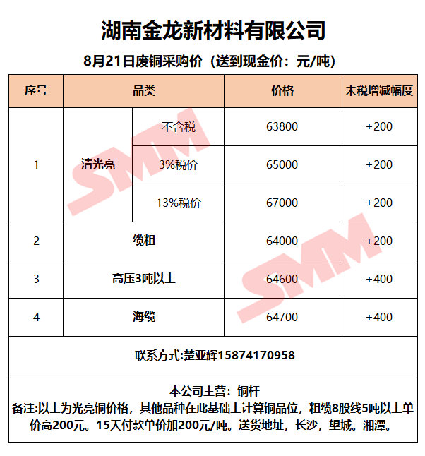 今日湖南金龙,废铜采购报价已更新,有货的朋友欢迎联系我们!
