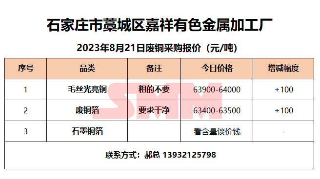 8月21日嘉祥有色金属 废铜采购报价