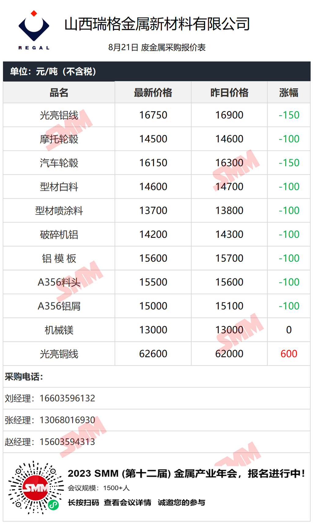 今日山西瑞格金属 废金属采购报价已更新,有货的朋友欢迎联系我们!