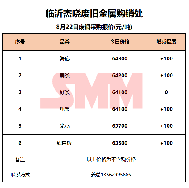 8月22日临沂杰晓 废铜采购报价