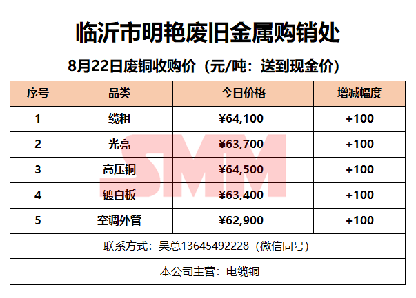 8月22日临沂明艳废旧金属 废铜收购报价