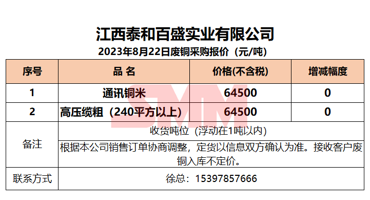 今日江西泰和百盛实业 ,废铜采购报价已更新,有货的朋友欢迎联系我们!