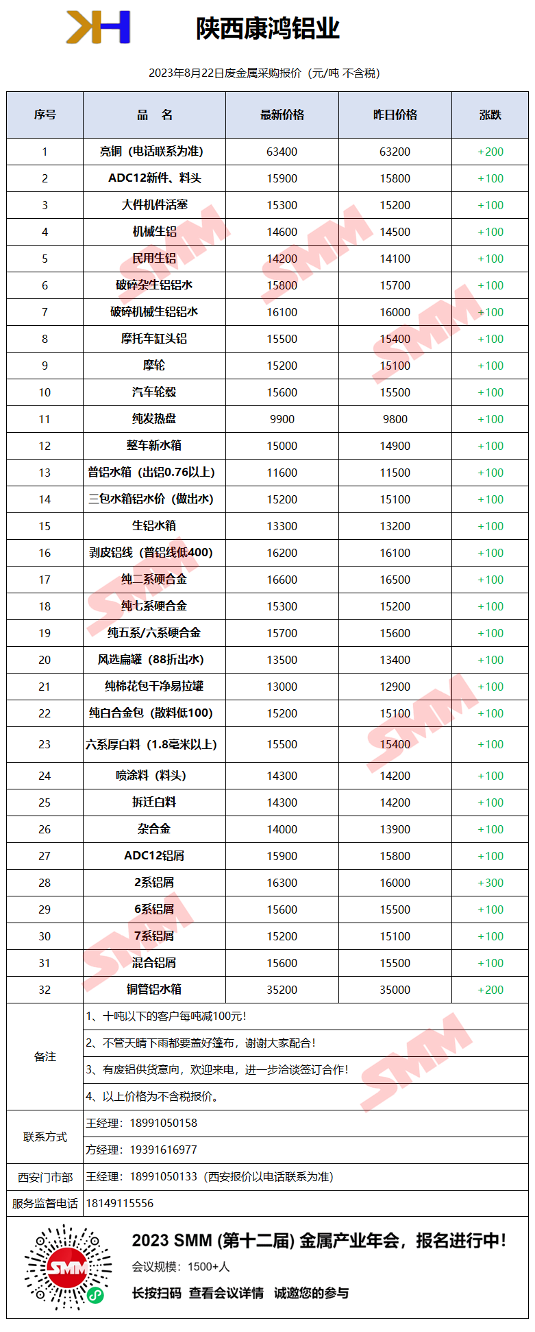 今日陕西康鸿铝业 废金属采购报价已更新,有货的朋友欢迎联系我们!