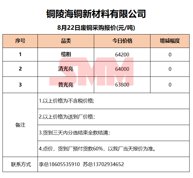 今日铜陵海铜,废铜采购报价已更新,有货的朋友欢迎联系我们!