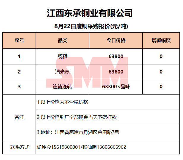 8月22日江西东承 废铜采购报价