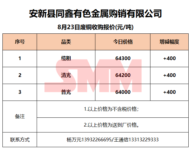今日安新同鑫,废铜收购报价已更新,有货的朋友欢迎联系我们!