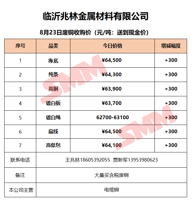 今日临沂兆林金属 ,废铜收购报价已更新,有货的朋友欢迎联系我们!