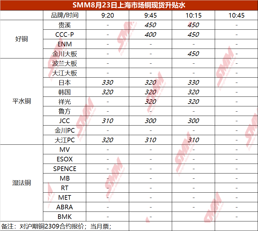 8月23日上海市场铜现货升贴水(第三时段)【SMM价格】