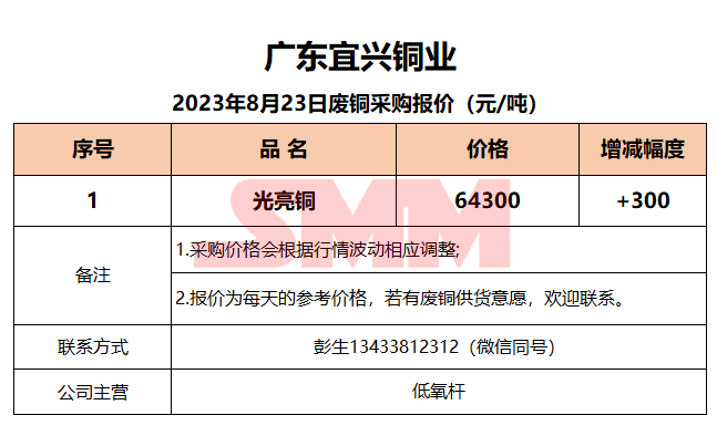 8月23日广东宜兴 废铜采购报价