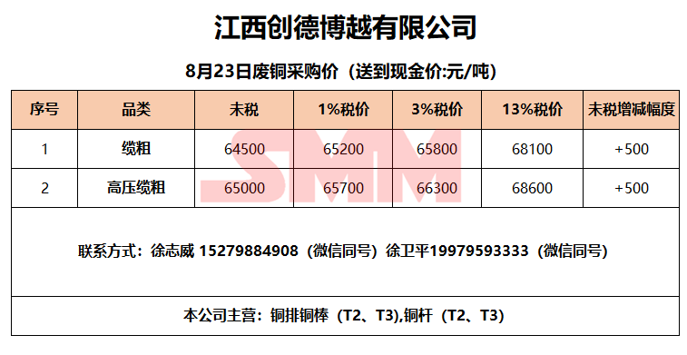 今日江西创德博越,废铜采购报价已更新,有货的朋友欢迎联系我们!