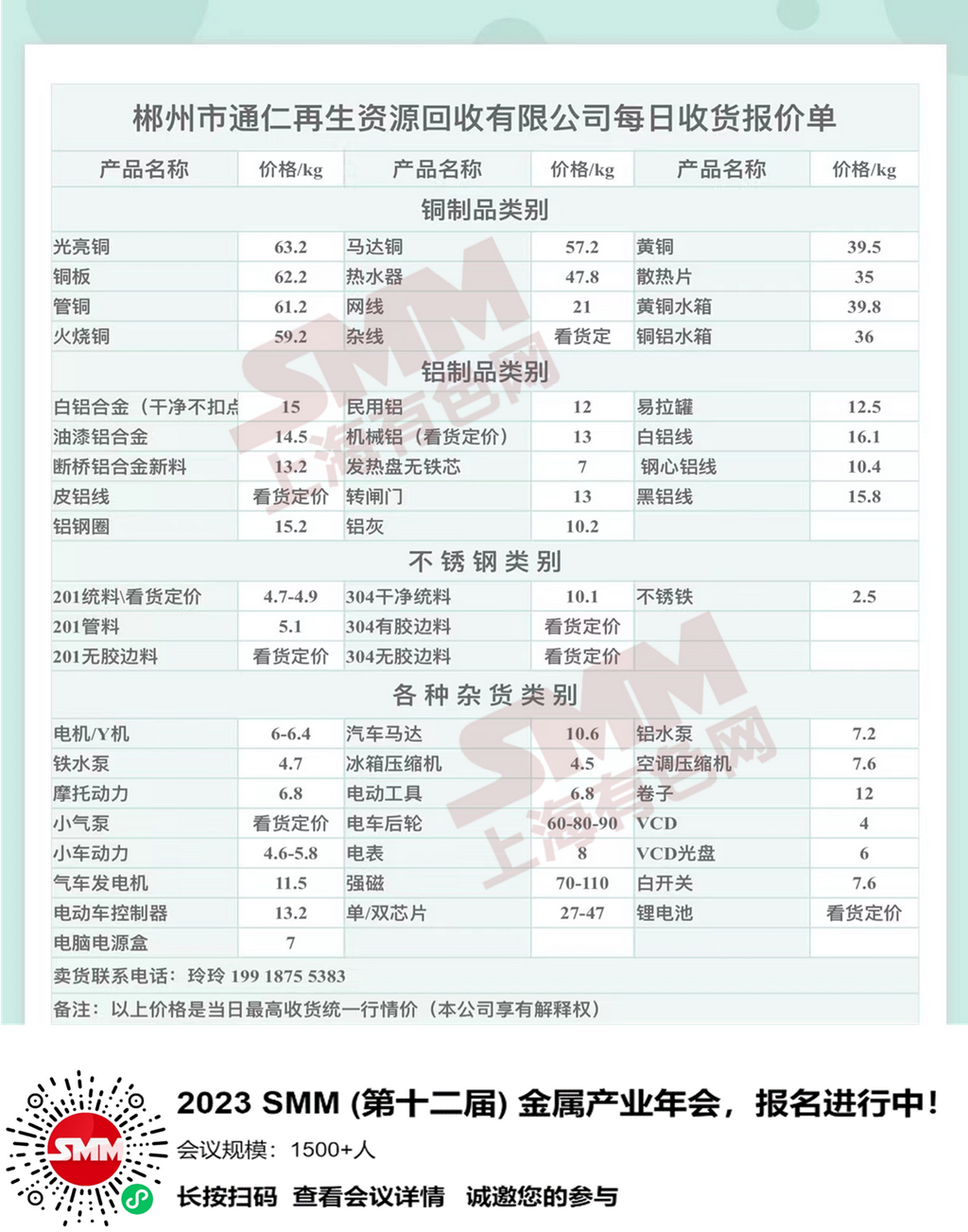 今日郴州市通仁再生资源回收有限公司 废金属收购报价已更新,有货的朋友欢迎联系我们!