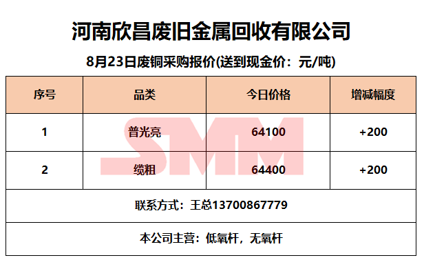 8月23日河南欣昌 废铜采购报价