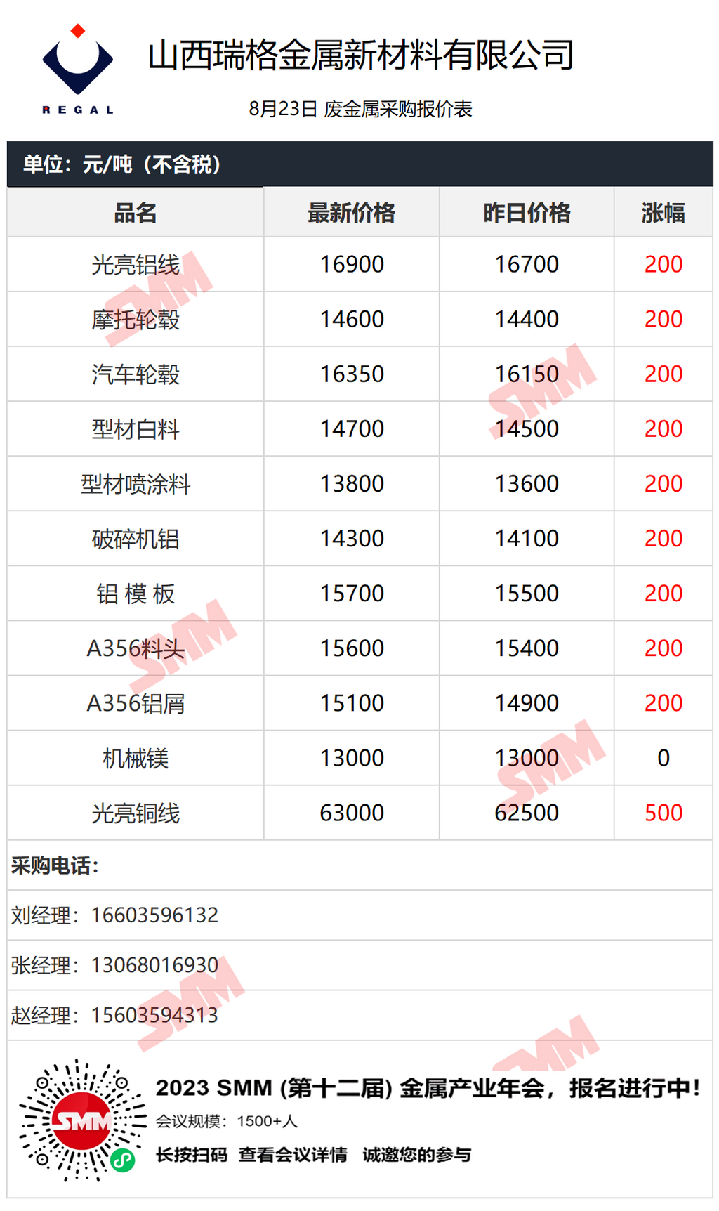 8月23日瑞格金属 废金属采购报价