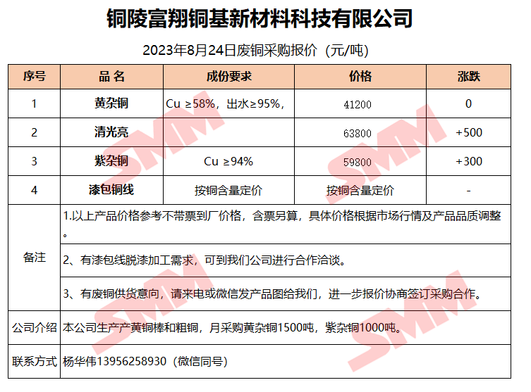 今日铜陵富翔 废铜采购报价已更新,有货的朋友欢迎联系我们!