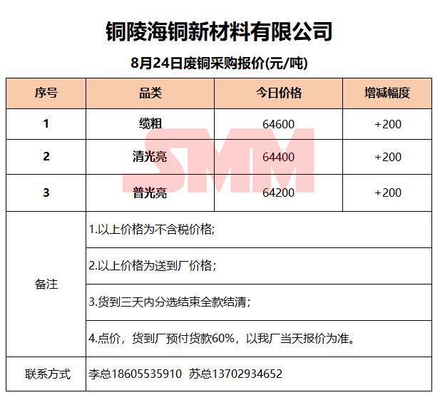 今日铜陵海铜,废铜采购报价已更新,有货的朋友欢迎联系我们!