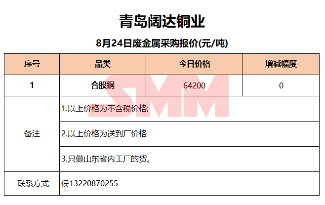8月24日青岛阔达 废金属采购报价