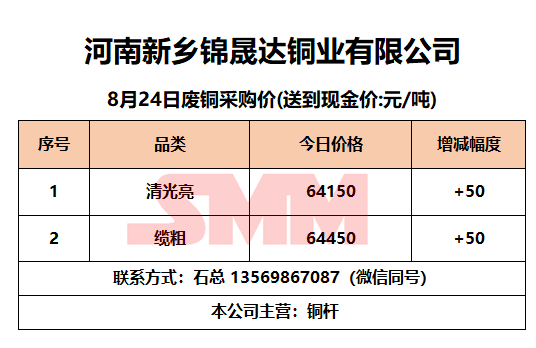 8月24日河南锦晟达 废铜采购报价