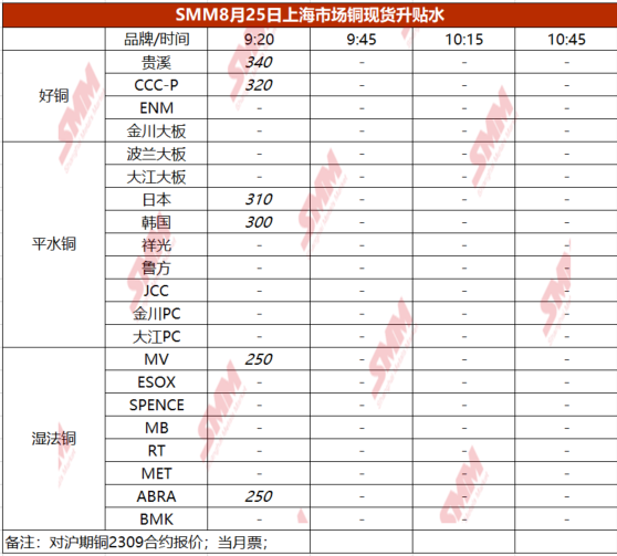 8月25日上海市场铜现货升贴水(第一时段)【SMM价格】