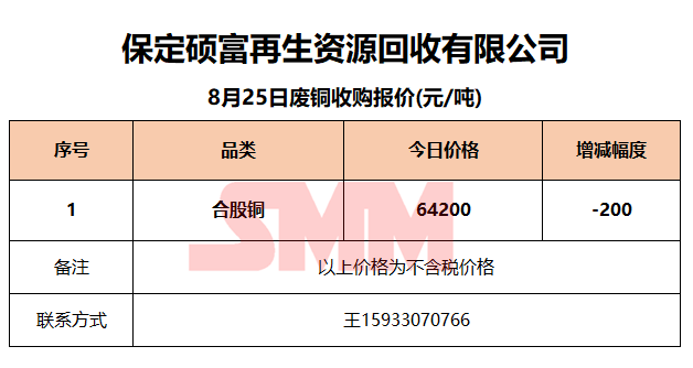 今日保定硕富 ,废铜收购报价已更新,有货的朋友欢迎联系我们!