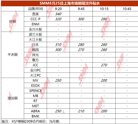 8月25日上海市场铜现货升贴水(第三时段)【SMM价格】