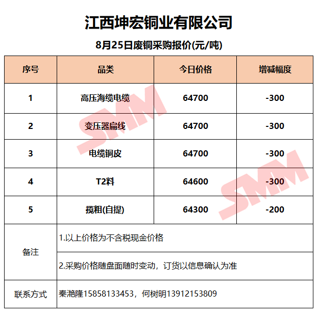 今日江西坤宏,废铜采购报价已更新,有货的朋友欢迎联系我们!