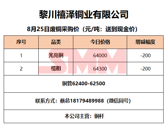 8月25日黎川禧泽铜业 废铜采购报价