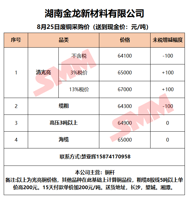 今日湖南金龙,废铜采购报价已更新,有货的朋友欢迎联系我们!