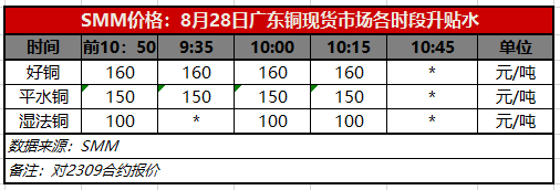 8月28日广东铜现货市场各时段升贴水(第三时段10:15)【SMM价格】