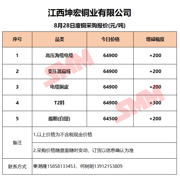 8月28日江西坤宏 废铜采购报价