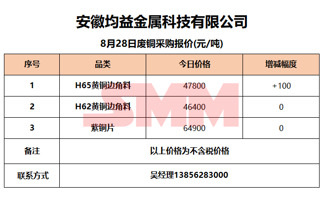 今日安徽均益,废铜采购报价已更新,有货的朋友欢迎联系我们!