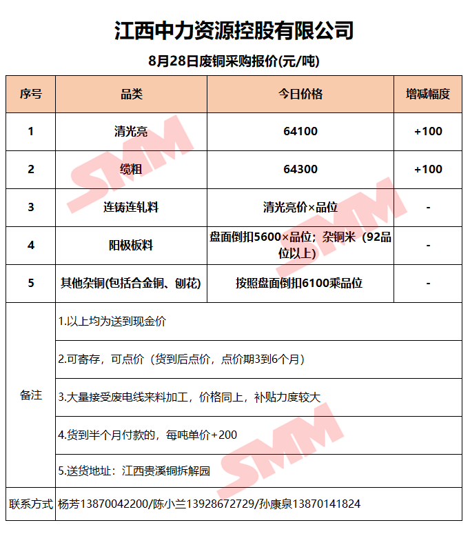 8月28日江西中力 废铜采购报价