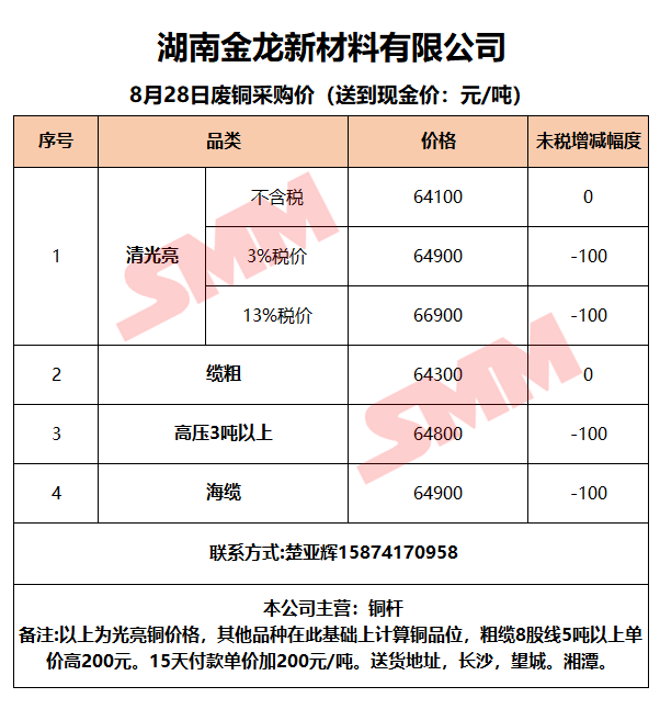 今日湖南金龙,废铜采购报价已更新,有货的朋友欢迎联系我们!