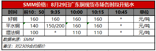 8月29日广东铜现货市场各时段升贴水(第三时段10:15)【SMM价格】